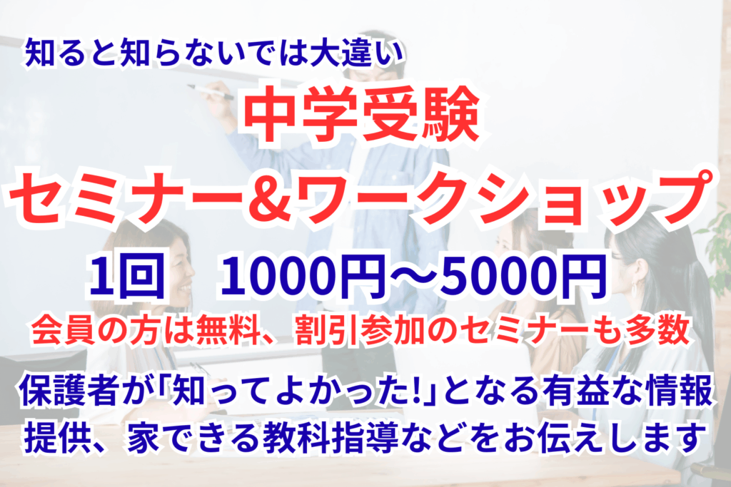 「成績低迷を脱出する勉強の進め方」「間に合うか…5年生夏からの中学受験」「進学には覚悟が必要な中高一貫校」「知らない人だからホンネで 母親座談会」「母親算数教室」…。 塾とはひと味違う多彩なテーマでワークショップ(体験型講座)や勉強会を少人数開催します。中学受験は親御さんも「勉強」です。