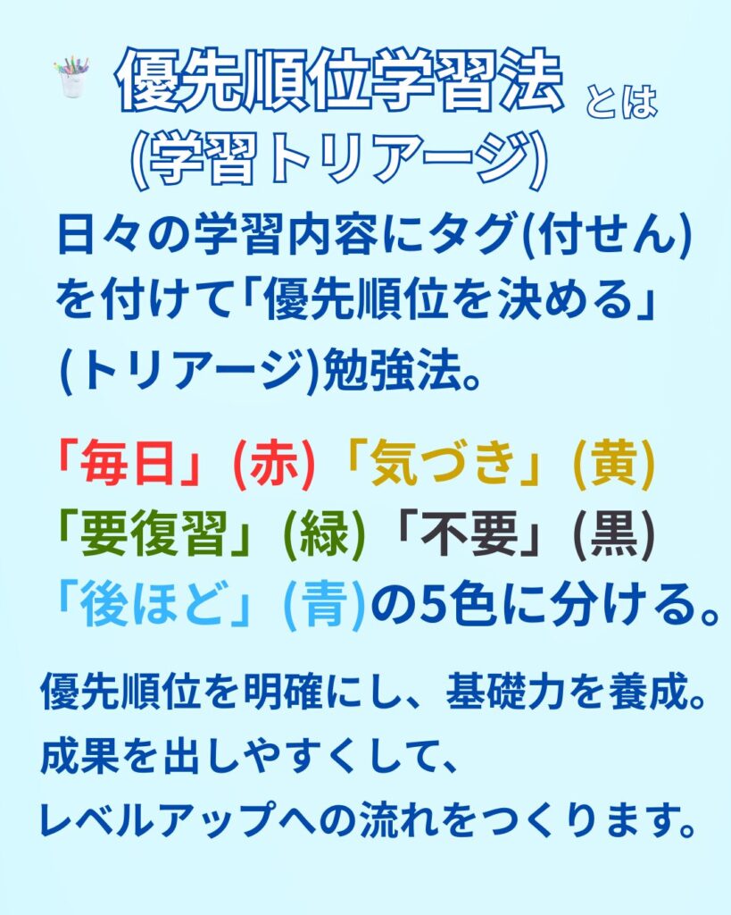 ・「優先順位学習法」で単元を絞り込み、基礎〜標準問題を徹底反復